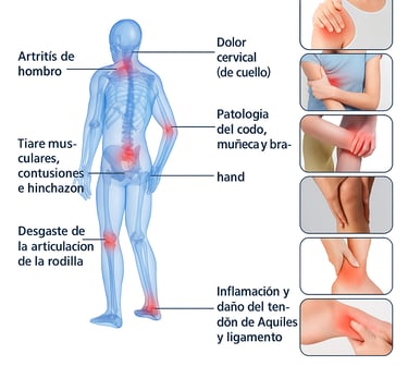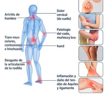 Dolores articulares crónicos (cadera, rodilla, columna) → 6 a 10 sesiones.